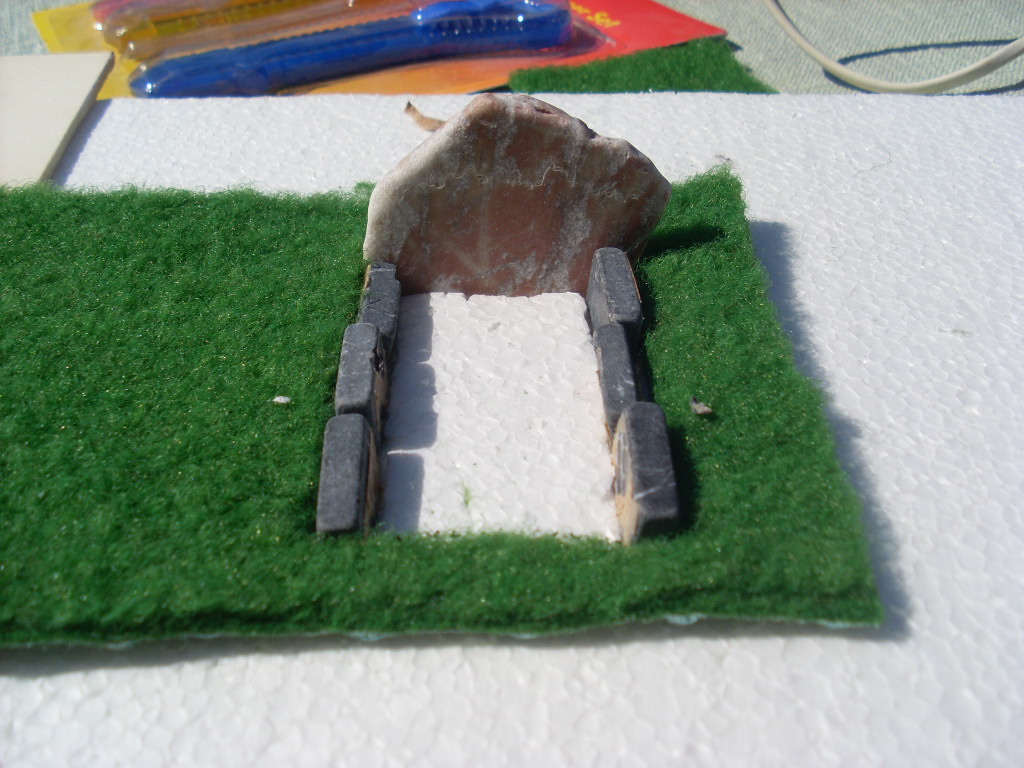 ausgeschnitten und der Rasen dann mit Fliesenkleber auf das Styropor